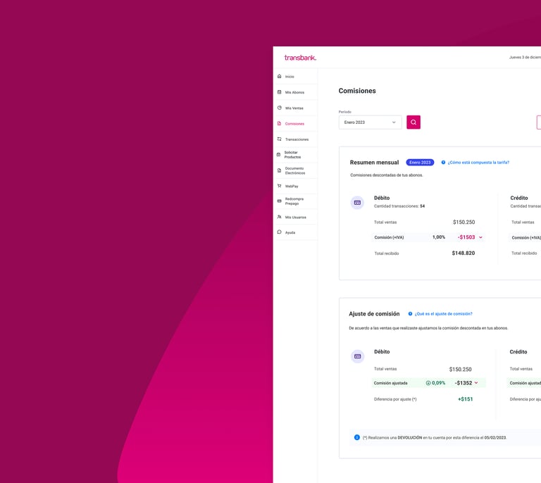 Diseño de portal de comisiones para que los comercios puedan consultar los movimientos de comisiones, tener información clara sobre el cálculo de las mismas.