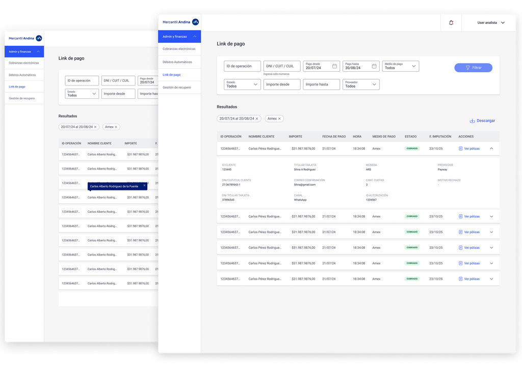 LIderé el diseño de una plataforma que permite a los usuarios pagar sus pólizas en solo tres pasos, garantizando autonomía y seguridad. Un recurso estratégico diseñado para ser compartido fácilmente por productores, optimizando la atención al cliente y la eficiencia operativa.