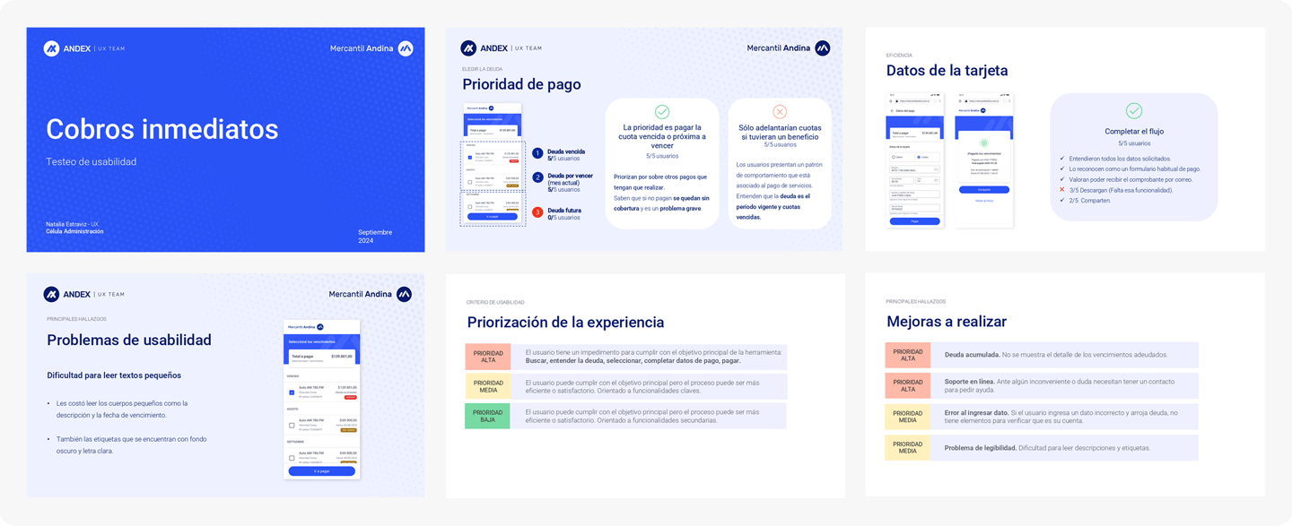 Realicé pruebas de usabilidad con productores y asegurados, obteniendo información valiosa para mejorar la experiencia y validar la propuesta.