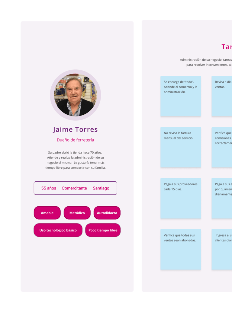 Las entrevistas me permitieron obtener información muy valiosa sobre el usuario: características del perfil, el recorrido que realizaban al revisar sus ventas y las necesidades y dificultades que tenían en la gestión de sus ventas.